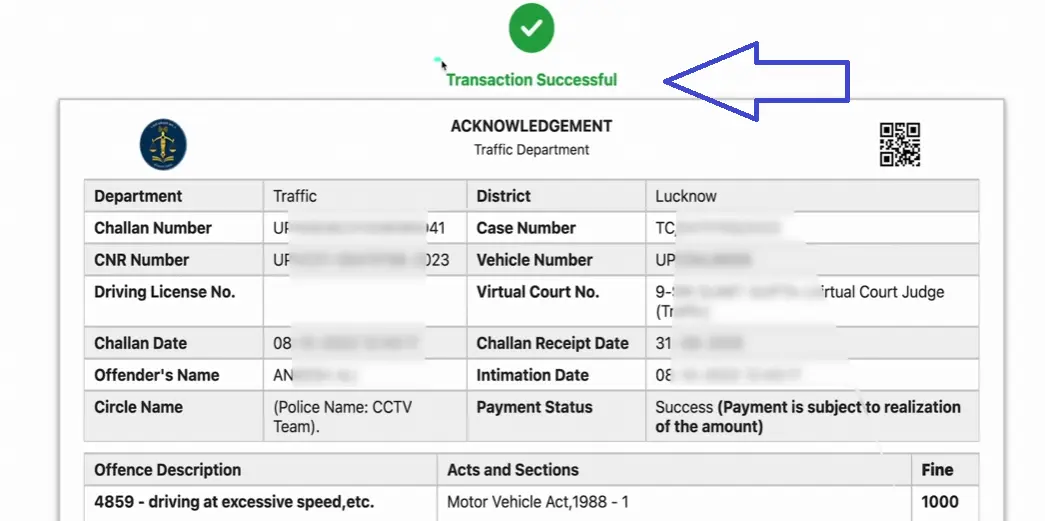 Once payment is completed, you can download the challan receipt directly from the state portal or Parivahan payment history page.